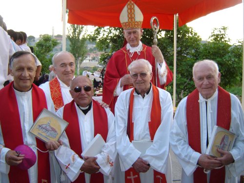 LIJEVO: nadbiskup msgr Ante Jurić i svi dosadašnji, živući, župnici Vida: don Pavo Banić, don Jure Marasović, don Mate Selak i don Ante Vojnović